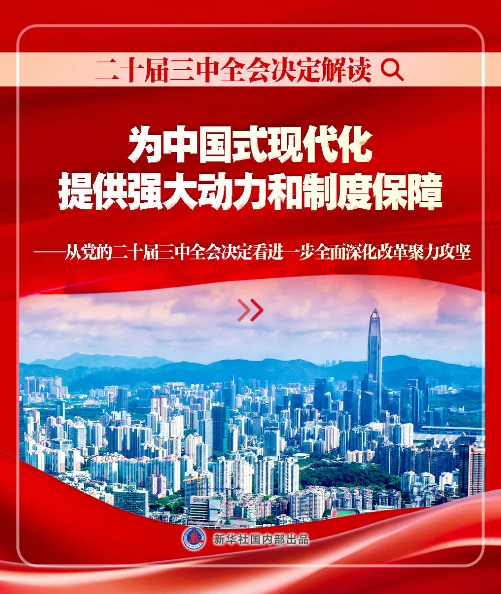 7月21日,《中共中央关于进一步全面深化改革、推进中国式现代化的决定》发布。新华社推出一系列解读报道,深入阐释党的二十届三中全会决定。点击海报,阅读全文↓↓